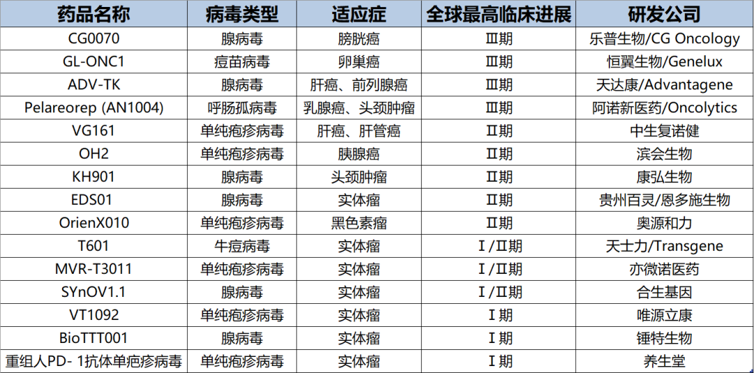 表2. 部分国内在研溶瘤病毒产品,来源:药渡数据