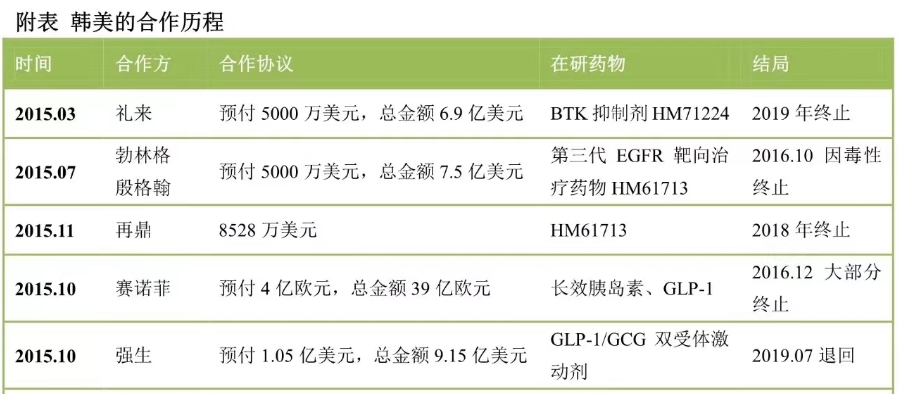 说起创新药出海被退货,更经典的例子是邻居家的韩美,2015年的韩美无疑是授权出海最耀眼的那颗星,但故事的结局是5项重磅合作均以失败告终。韩美以一己之力“坑”苦了4家MNC,赛诺菲更是在一系列失败后彻底退出糖尿病领域新药研发。反观国内创新药出海,总体质量是比较高的,有限的几款退货产品,多因为策略调整,或者新靶点本身的风险释放,极少有药物设计或数据的问题。相信国产创新药,会越来越多受到国际认可,并通过临床验证在欧美上市,造福全球患者。