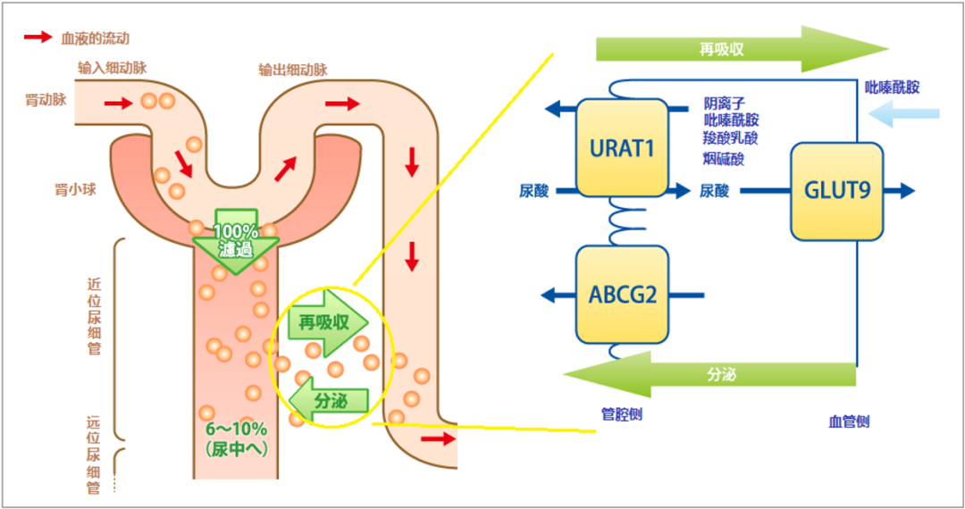 图1. URAT1作用机制,来源:TAKAHASHI CLINIC