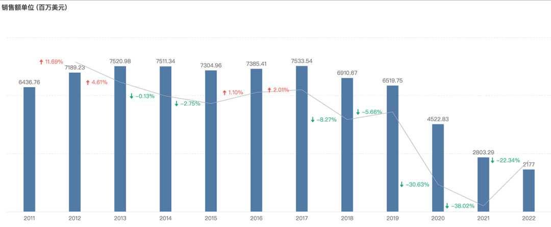 利妥昔单抗是第一代 CD20 单抗当中翘楚,作为罗氏老「三驾马车」之一,其峰值销售额达到 75.34 亿美元,虽然受类似药冲击,销售额下滑,但在 2022 年仍实现了 21.77 亿美元的销售额,位居罗氏销售额前十之列。