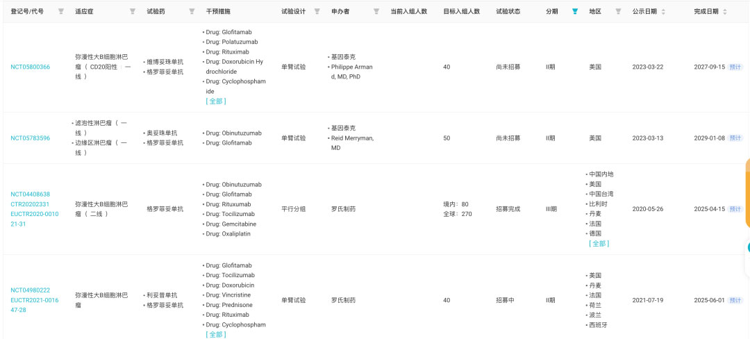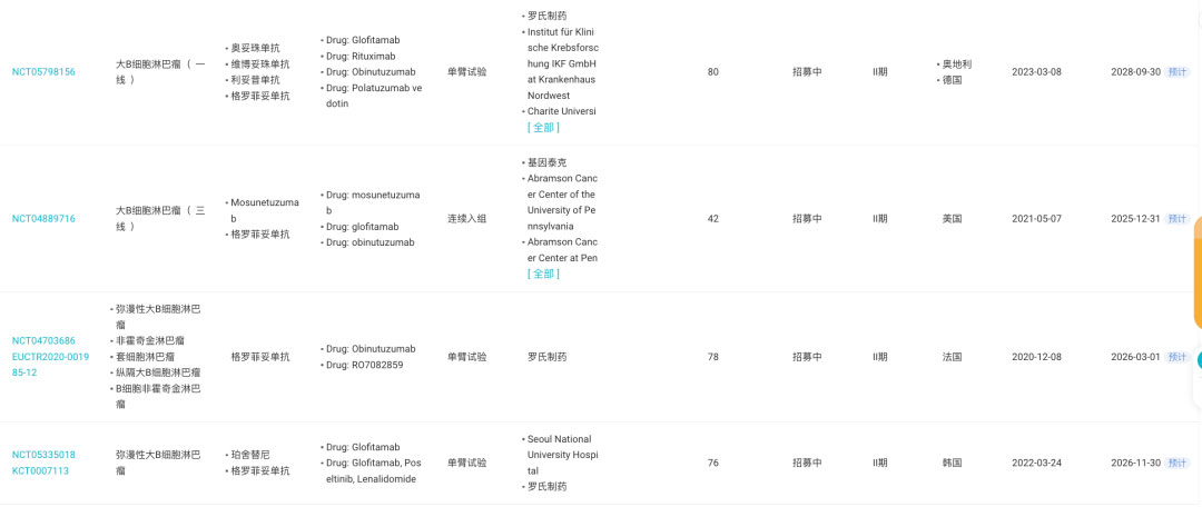 Glofitamab 临床试验(II 期及以上,不包括 I/II 期)