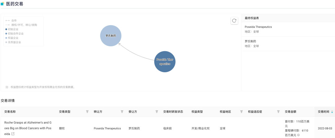 该产品是罗氏从 Poseida Therapeutics 引进的项目。2022 年 8 月,罗氏与 Poseida 达成合作,以 1.1 亿美元首付款从 Poseida 获得独家授权,以开发和商业化 Poseida 产品管线中包括 P-CD19CD20-ALLO1 在内的多个针对血液恶性肿瘤的 CAR-T 项目。