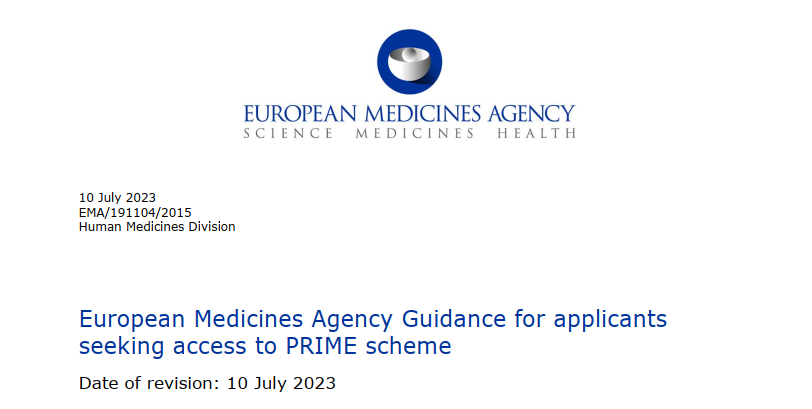 2023年7月10日,EMA更新《EMA关于申请PRIME计划的申请人指南》,本指南旨在为潜在的“PRIME计划”申请人提供指导。