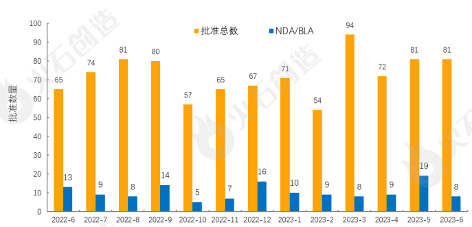 图1 2022年6月—2023年6月FDA药物批准数量变化情况 来源:美国食品药品监督管理局