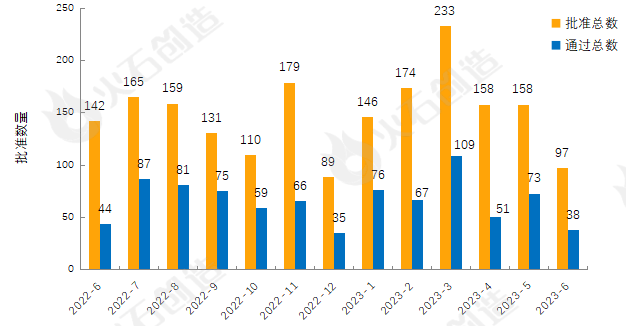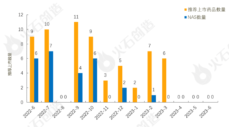 图2 2022年6月—2023年6月EMA推荐上市药品数量变化情况 来源:火石创造产业数据中心