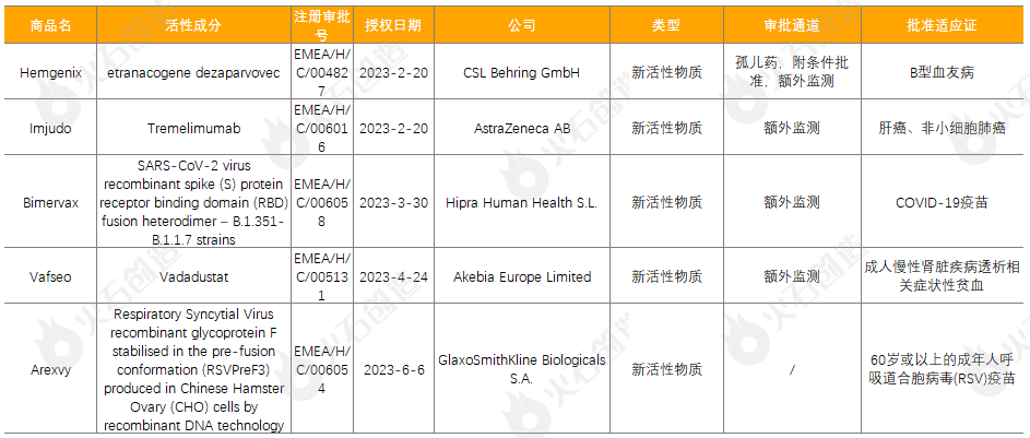 截至2023年7月7日,2023年上半年EMA共授权25款药品上市,其中授权5款新活性物质药,见表2。
