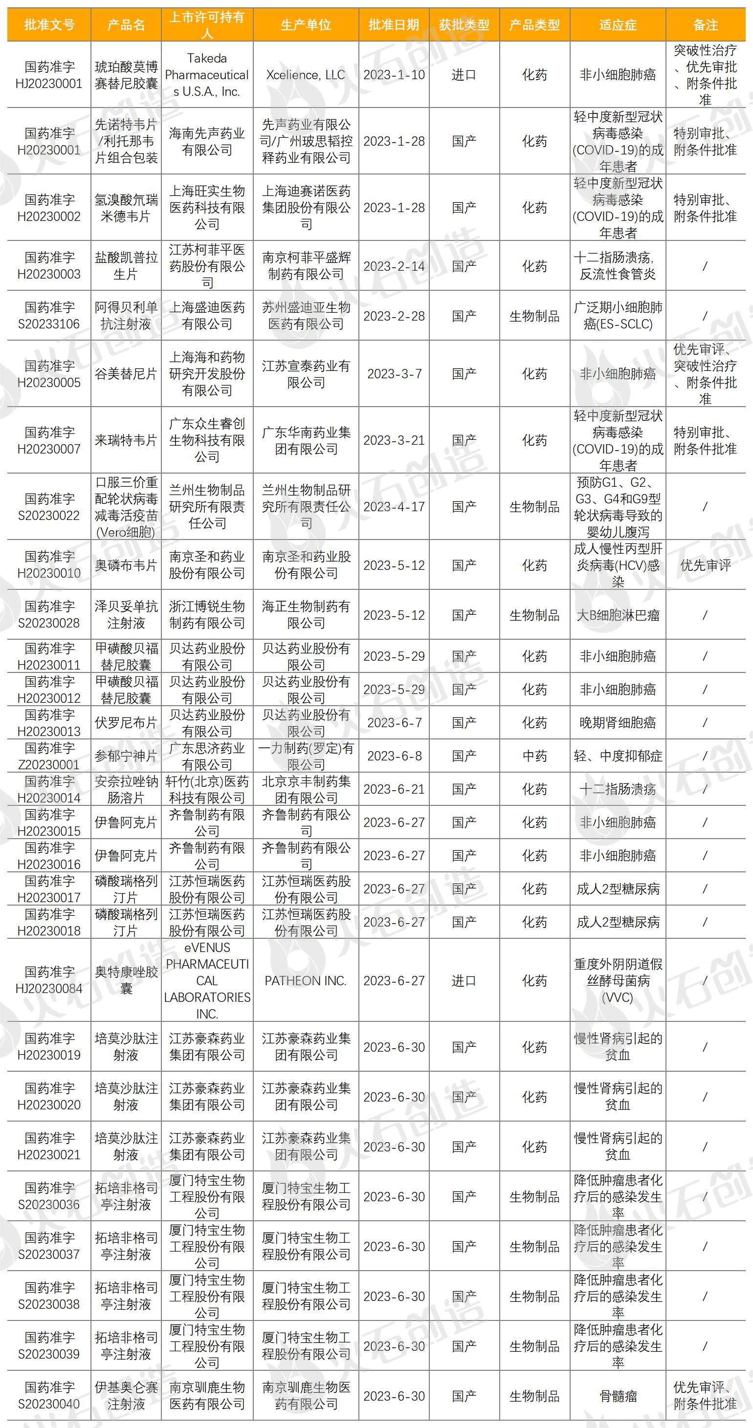 3款药品均通过特别审批程序,附条件批准上市,后续需继续开展相关研究工作,限期完成附条件的要求。2023年6月单月,合计16个品规(9个品种)1类创新药爆发式获批上市。