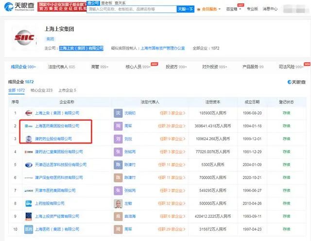 根据天眼查股权穿透,津药药业及上海医药均为上海上实集团成员。