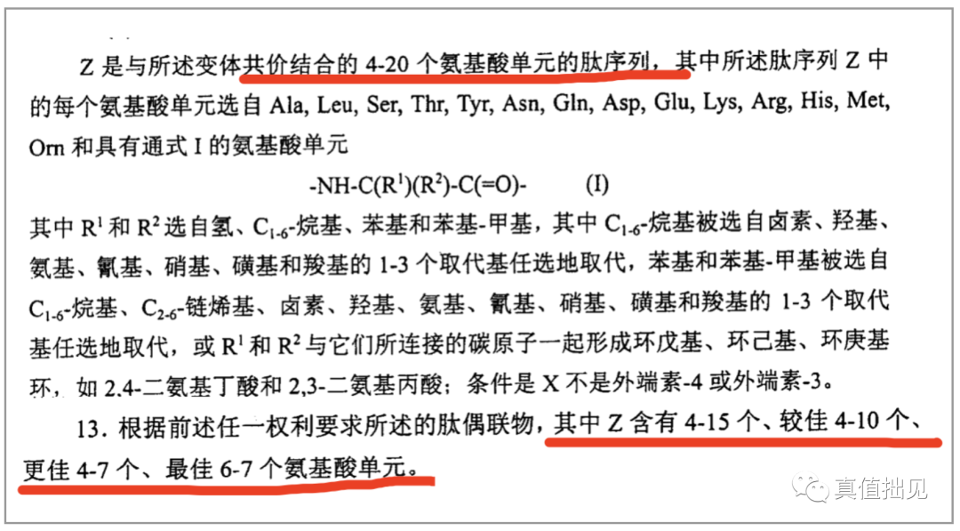 其次对于证据3-1中还主张了在GLP尾部添加额外的Z部分(额外的氨基酸),原文如下:因此如果按照专利的技术启示,技术人员还会合理预期再在GLP的尾部添加4~10个氨基酸单元,上面临床实验结果半衰期最长的化合物尾部是带了6个赖氨酸的,并且专利中暗示了Z部分较佳的结果是带4~10个。