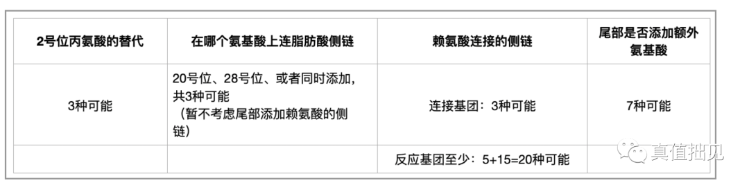 ②此外2号位是DPP-4的降解位点,进一步优化了2号位的丙氨酸替换成了Aib从而防止DPP-4岁GLP-1的降解,这种方法此前的艾塞那肽、阿必鲁泰、度拉糖肽都有使用,只不过2号位替换成了甘氨酸。