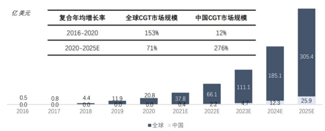 图一|全球以及中国CGT的市场规模(数据来源:沙利文)