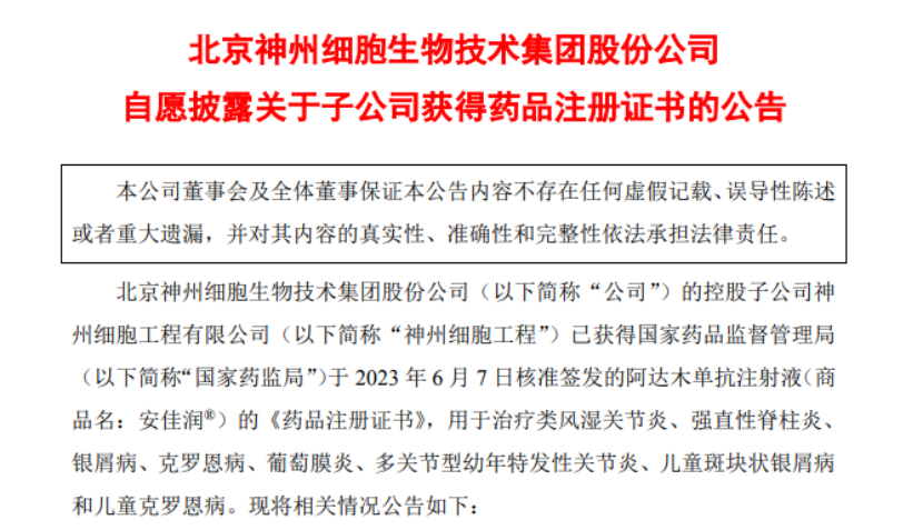 生物类似药是指在质量、安全性和有效性方面与原研药(参照药)有相似性的治疗用生物制品,其氨基酸序列原则上应与原研药相同。近年来,我国生物类似药迅速发展,包括阿达木单抗、贝伐珠单抗、利妥昔单抗、曲妥珠单抗等在内的多个生物类似药已有多家药企获批。6月12日,神州细胞宣布国家药品监督管理局(NMPA)已正式批准公司自主研发阿达木单抗注射液上市申请。至此我国已有7家企业成功仿制阿达木单抗注射液,分别为百奥泰、海正生物、信达生物、上海复宏汉霖、正大天晴、君实生物/众合生物以及神州细胞。