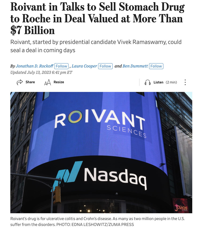 2.Fresh from Pfizer deal, Roivant posts 'best-in-class' ulcerative colitis data on rival to Prometheus prospect;Fierce
