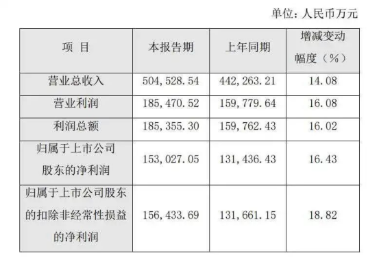 7月14日,中药龙头片仔癀发布2023年半年度业绩快报,2023年半年度公司营业总收入50.45亿元,同比增长14.08%;归属于上市公司股东的净利润15.3亿元,同比增长16.43%。