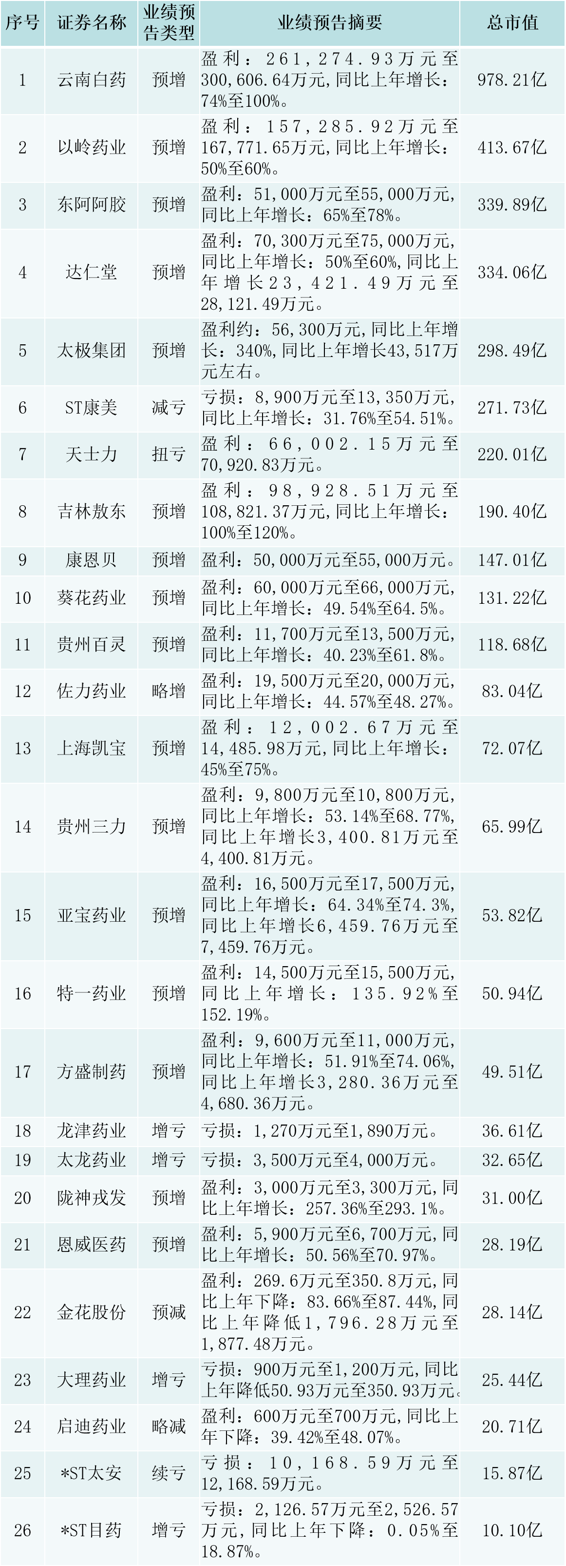 据不完全统计,已超过100家医药上市公司发布业绩预告,其中超过60家企业业绩预喜(包括预增、续盈、扭亏、略增),预喜率约57%。