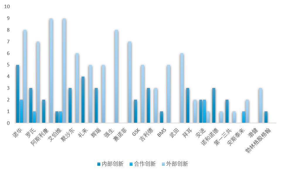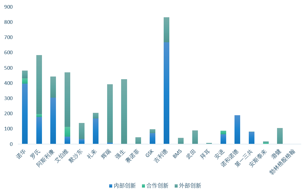 总体而言,TOP20制药公司商业模式很大程度是建立在外部创新基础上,而中小型生物技术公司是最重要的创新来源。那么,这些外部/合作创新或者自研创新是否带来了实实在在的回报?
