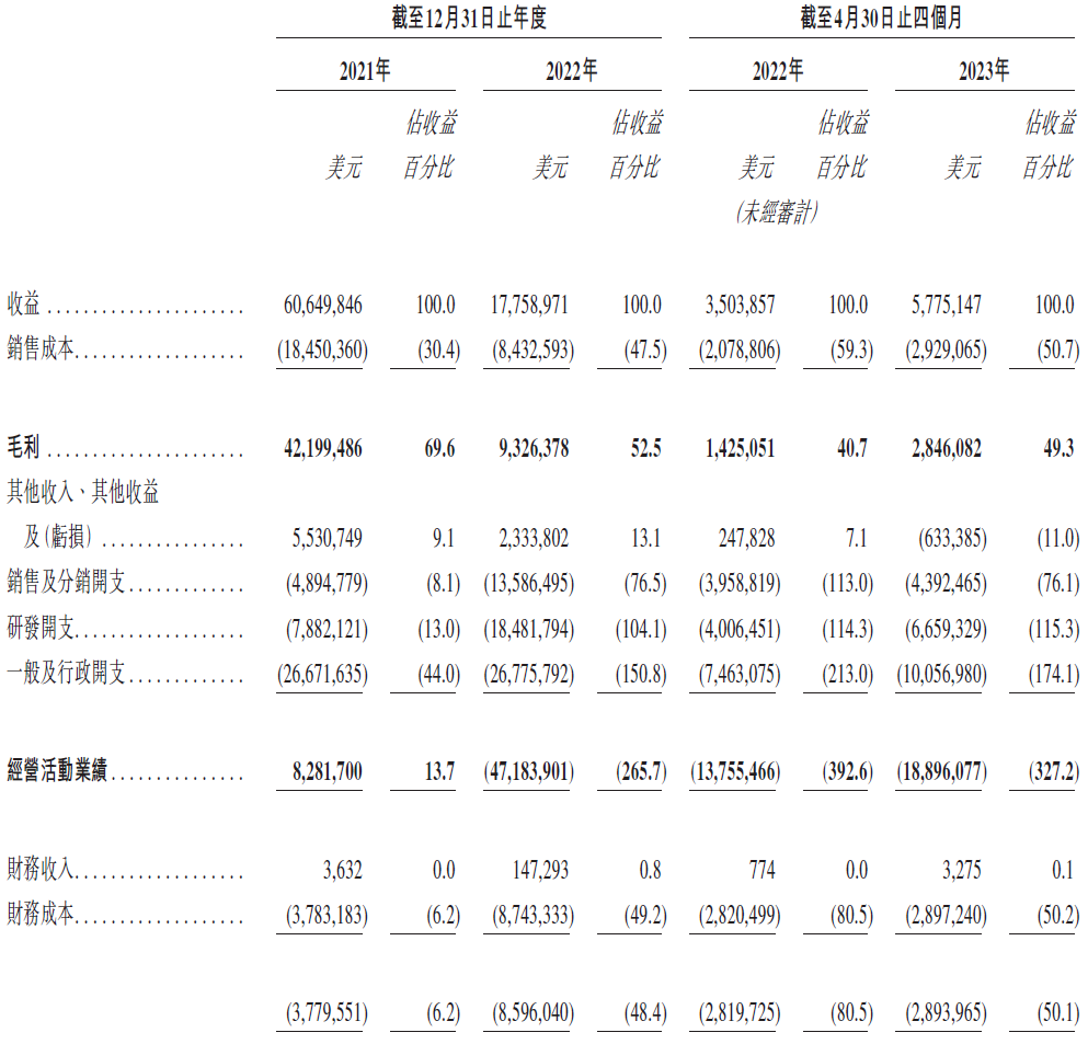 觅瑞集团2021、2022年收入分别为6065万美元、1776万美元,2023年前四个月营收578万美元。