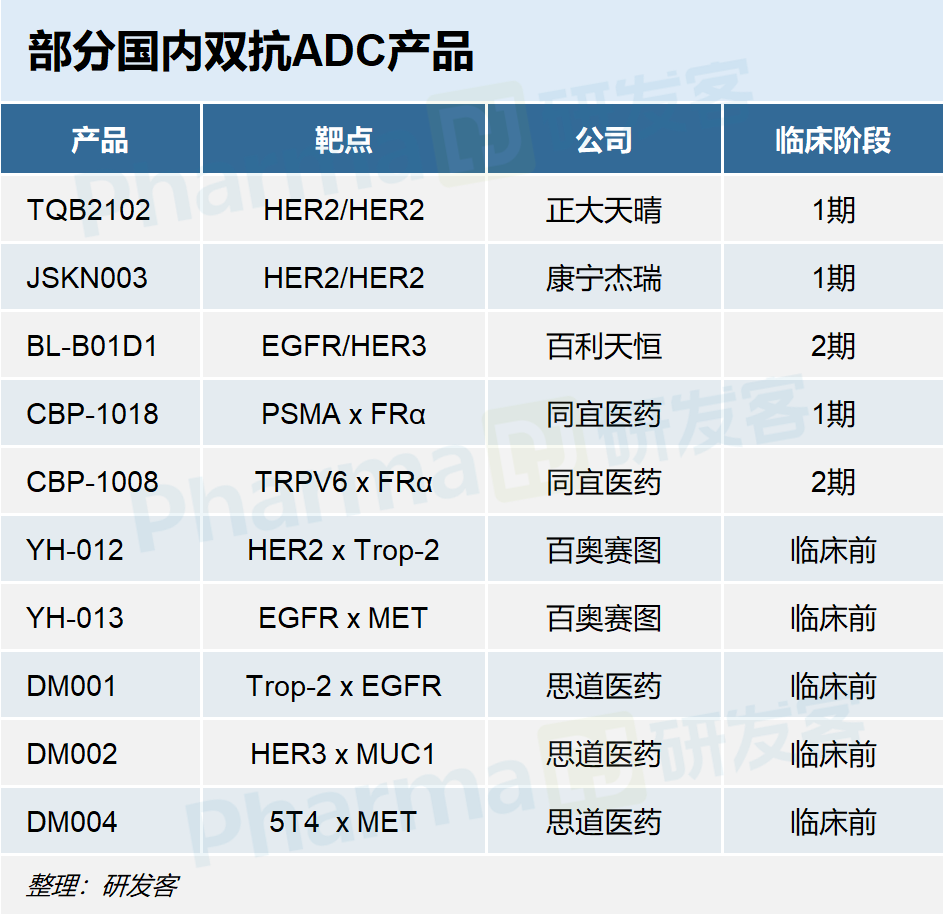 当前国内也有多家公司解锁了双抗ADC技能,部分产品的靶点创新也走在全球前列。