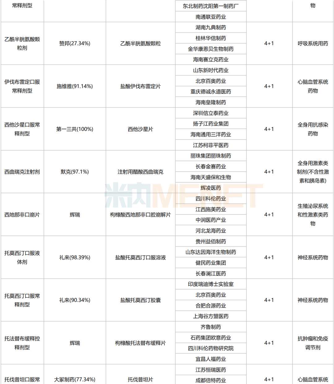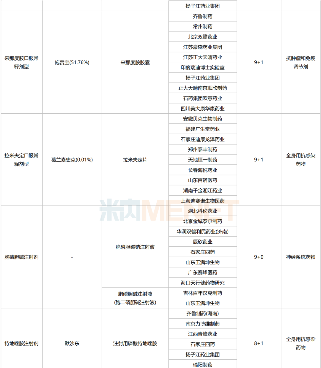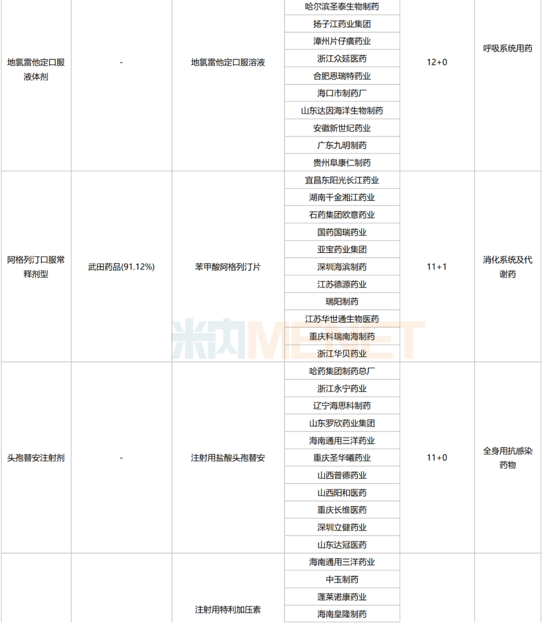 注:部分药品因专利期、产品属性等可能不会被纳入,一切信息以官方为准!企业数以集团计