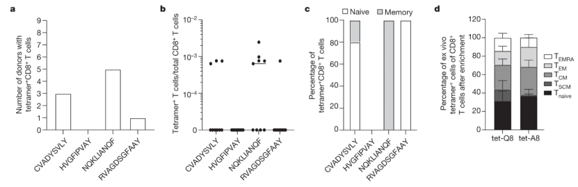 总之,该研究证明了常见的HLA I 类等位基因HLA-B*15:01与 SARS-CoV-2 无症状感染之间存在强烈且显着的关联。证明了 HLA-B*15:01+大流行前样本中的T 细胞对免疫显性 SARS-CoV-2 肽有反应,该肽与季节性冠状病毒的肽具有高度序列相似性。该结果对于了解早期感染和早期病毒清除的机制具有重要意义,并可能为完善早期疾病的疫苗开发和治疗选择奠定基础。