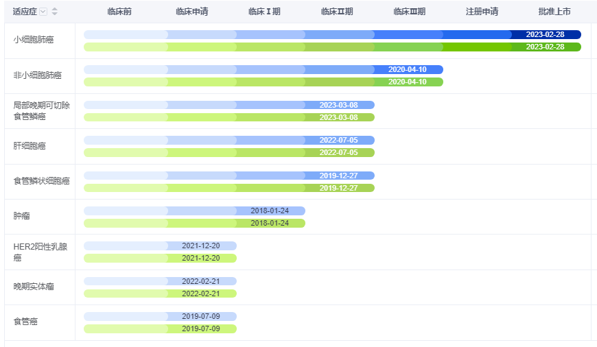 除了小细胞肺癌和食管鳞癌,阿得贝利单抗还有7个适应症同时在研,其中非小细胞肺癌已进展至临床三期。