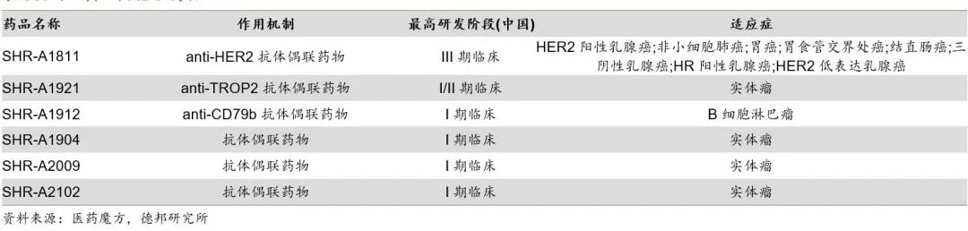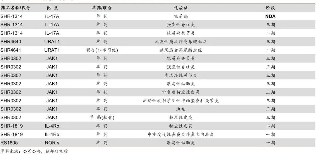 自研药物信息 数据来源:恒瑞医药年报及公告