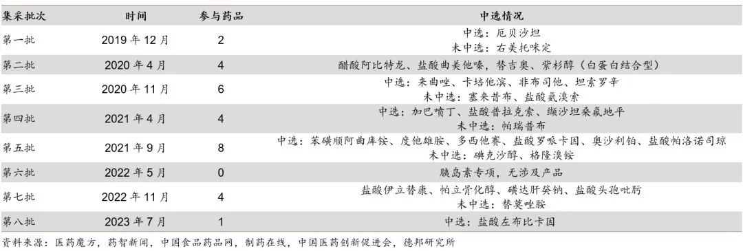 在第七批集采后,2022年11月开始陆续执行的第七批集采涉及的5个药品,2022年销售收入9.8亿元,较上年同期减少9.2亿元,同比下滑48%。