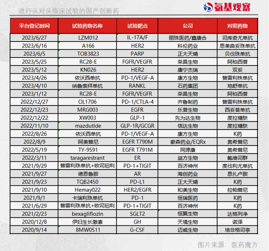 在国内玩家的创新药研发实力得到证实的情况下,越来越多国内玩家开始有实力、有底气去布局头对头临床试验。