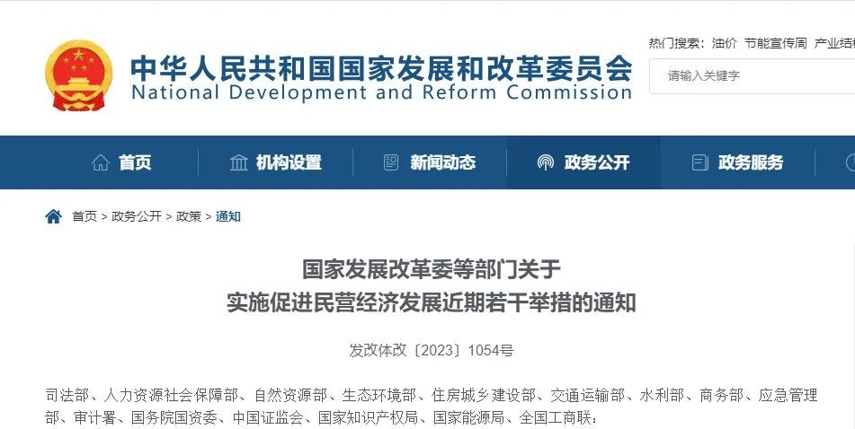 8月1日,国家发改委等部门联合发布关于实施促进民营经济发展近期若干举措的通知。以下为全文: