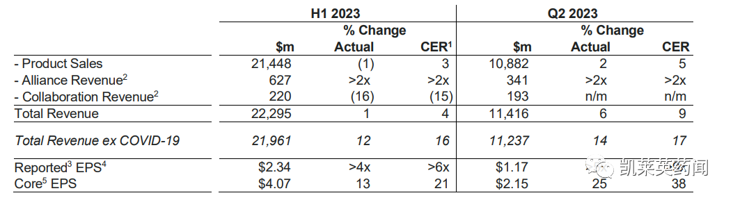 7月28日,阿斯利康公布2023H1业绩,公司总收入222.95亿美元,其中产品收入214.48亿美元;扣除新冠产品,上半年收入219.61亿美元,同比增长12%。其中美国市场上半年收入90.81亿美元,同比增长7%;新兴市场62.77亿美元,同比去年小幅增长,中国区上半年收入30.43亿美元,贡献了近一半的业绩。