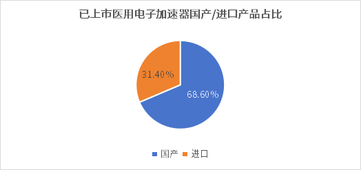 据药智医械数据统计,目前我国已批准30余款医用电子加速器上市,国产占比68.6%,生产企业包括瓦里安、医科达等跨国企业及新华医疗、联影等本土企业。