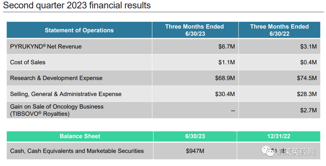 除此以外,Agios报告了公司2023年第二季度财务业绩。