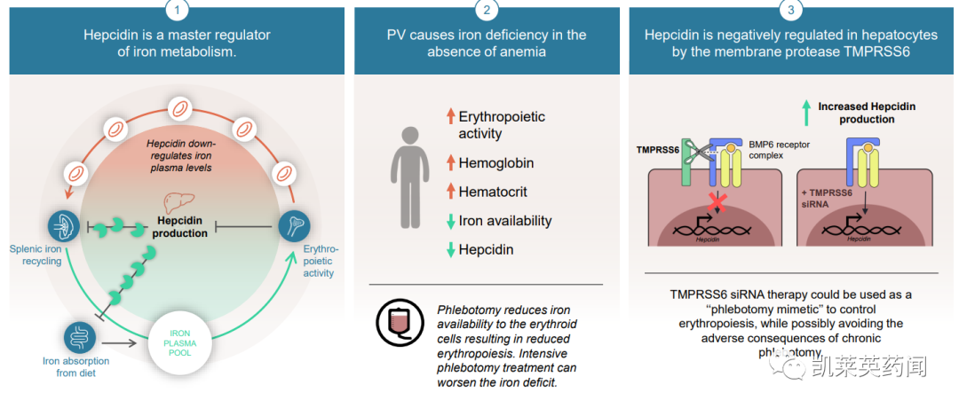 据悉,Agios刚获得的siRNA药物旨在靶向TMPRSS6,用于真性红细胞增多症。该药物可导致铁调素增加,通过减少造血室可用的铁,从而减少红细胞的产生。真性红细胞增多症是一种罕见且可能致命的血液系统疾病,静脉放血是其标准治疗方法。研究表明,该药物已表现出低脱靶活性、在大鼠中具有良好的安全性;且在非人类灵长类动物中,3 个月内 TMPRSS6 mRNA 敲低 90%,展示出无需频繁给药的治疗潜力。