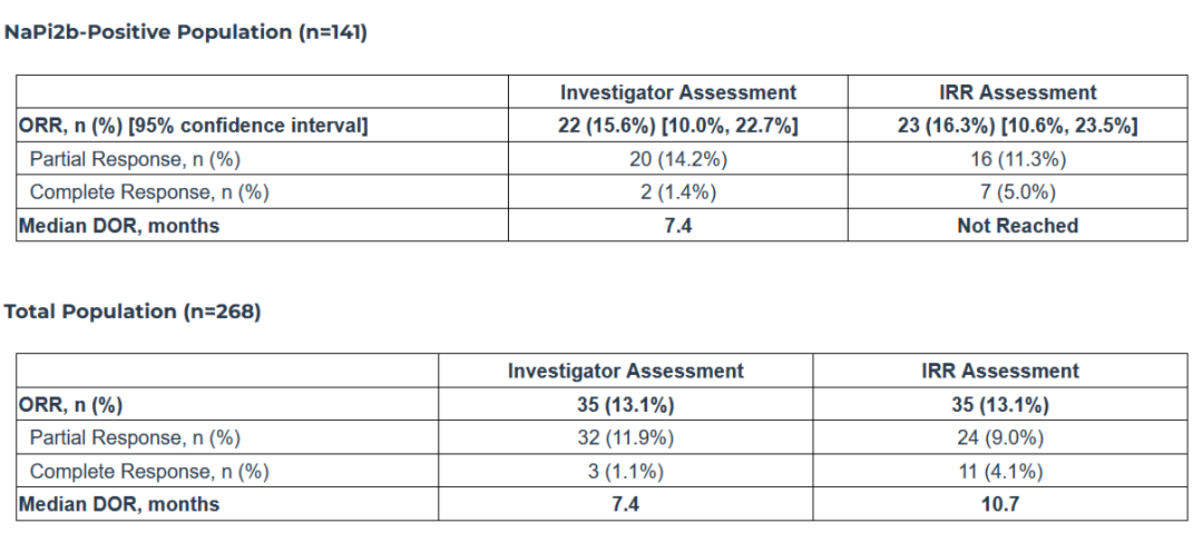 7月底,Mersana宣布,UpRi的临床试验UPLIFT未达到主要终点。对于NaPi2b阳性人群,研究者和IRR评估的UpRi ORR分别是15.6%和16.3%。该项临床试验表明,UpRi的疗效,未能在Ib期临床试验的剂量扩展部分复制100多名患者的先前数据。
