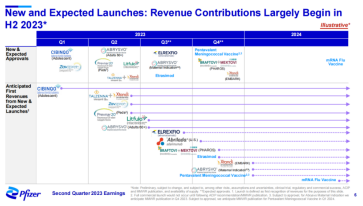 2023年第二季度,辉瑞的主要收入来源于抗凝血药物Eliquis(阿哌沙班)、新冠mRNA疫苗Comirnaty、肺炎疫苗Prevnar、乳腺癌药物Ibrance(哌柏西利)、3款罕见心肌病药物Vyndaqel/Vyndamax/Vynmac、类风湿药Xeljanz、前列腺癌药物Xtandi(恩扎鲁胺)等几大重磅品种。