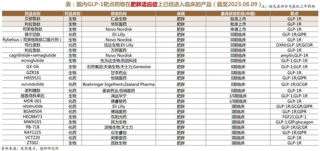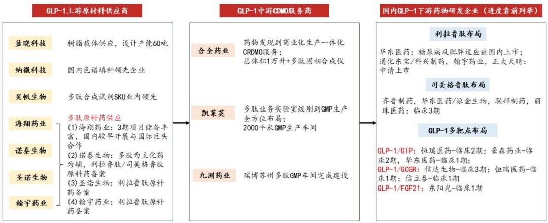 GLP-1 产业链全景图 资料来源:各公司官网,公司公告,医药魔方,西部证券研发中心