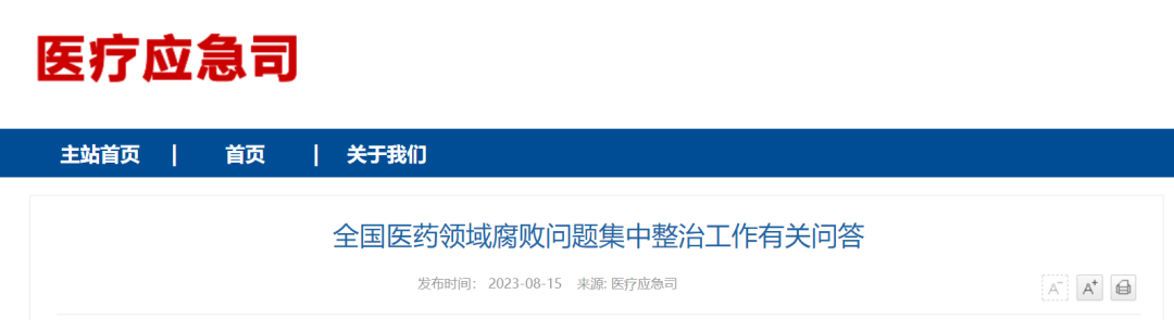 8月15日,国家卫健委官网挂出《全国医药领域腐败问题集中整治工作有关问答》,对近期开展的医疗反腐情况进行了相关问题的回答。