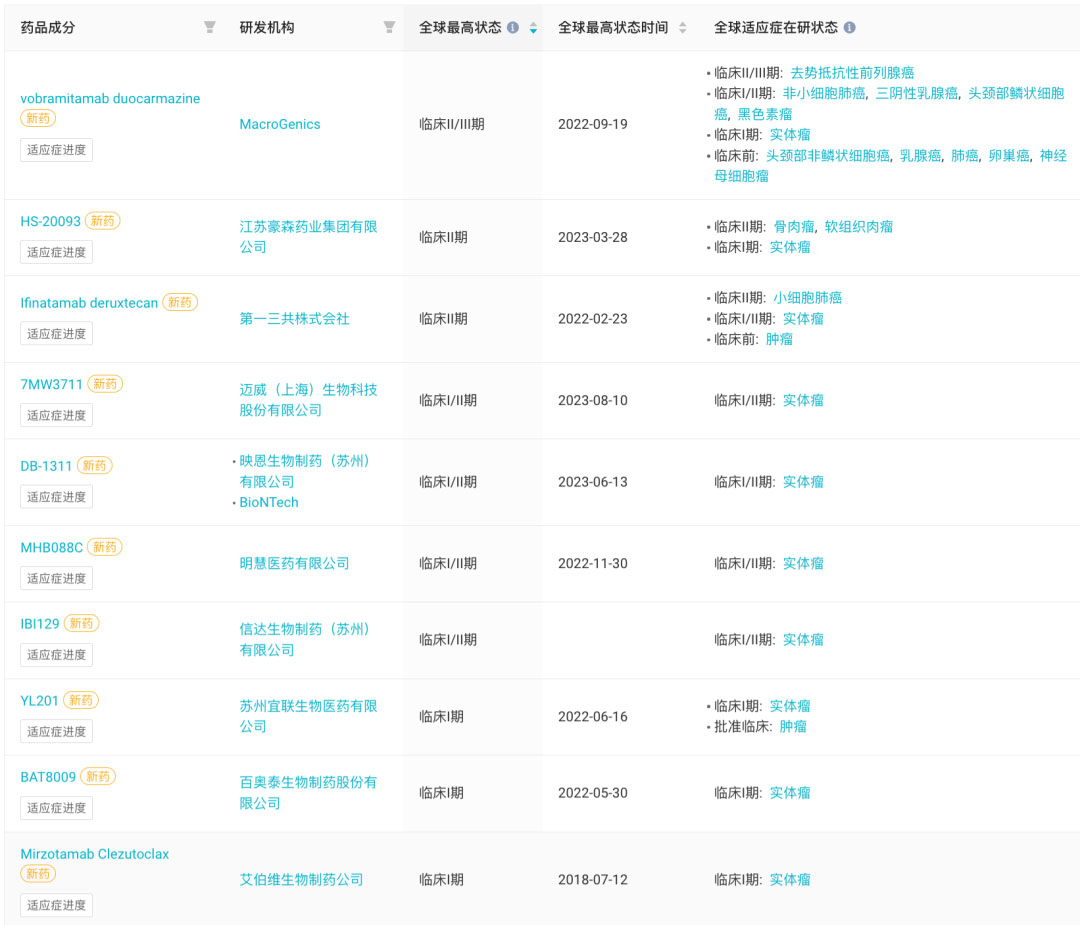 全球进入临床阶段 B7-H3 ADC