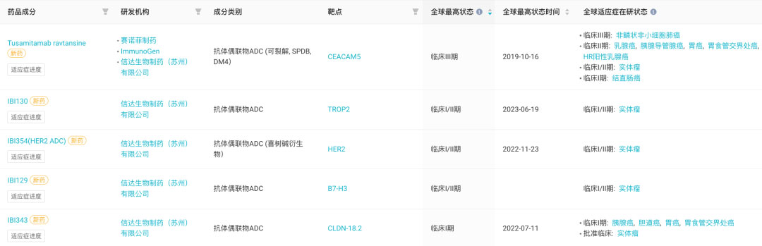 信达生物:5 款 ADC 进入临床