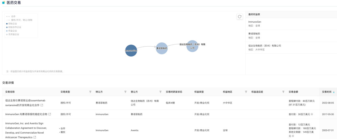 2022 年 8 月信达从赛诺菲引进该产品,信达将负责 IBI126 多个肿瘤适应症在中国的临床开发和独家商业化。赛诺菲将有权获得累计最高达 8,000 万欧元的潜在里程碑付款,以及该产品在中国获批上市后基于净销售额的特许权使用费。