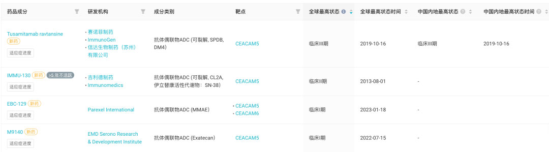 全球进入临床阶段 CEACAM5 ADC(含多靶点)