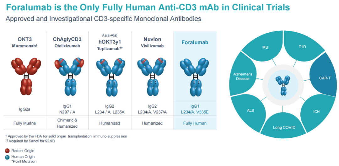 foralumab是唯一的全人源CD3单克隆抗体。