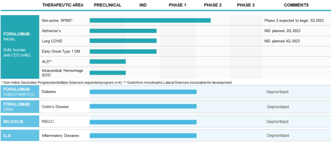 除了AD适应症,foralumab还在进行针对SPMS,ALS和长新冠等疾病的研究。