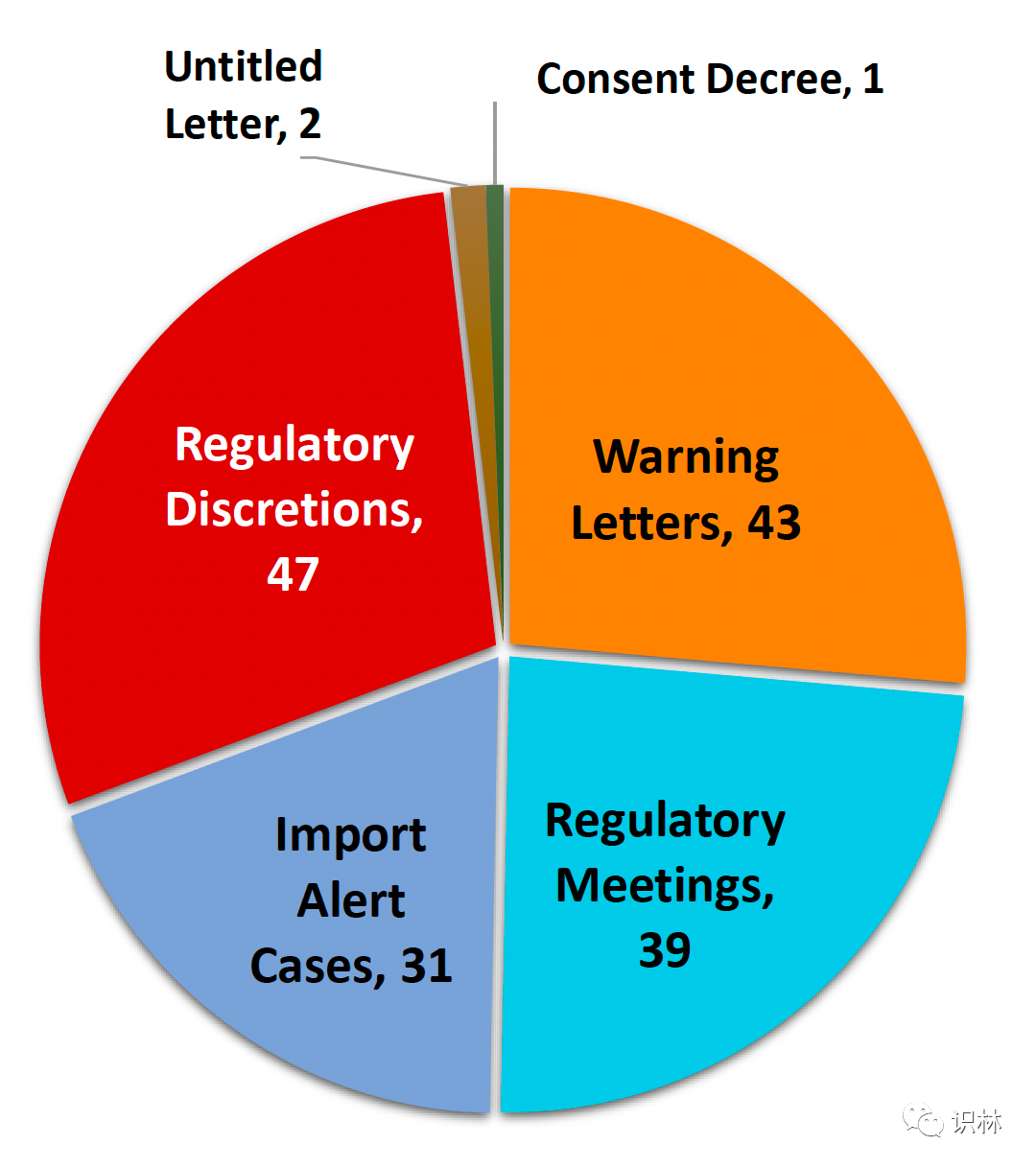 Maguire 表示,从 2022 年 10 月到 2023 年 3 月底,FDA 共采取了 163 项执法和建议行动,其中包括发布了 43 封警告信,31 次进口禁令通知,召开 39 次监管会议,行使 47 次监管自由裁量,发布 2 封无标题信,以及 1 项合意判决。(见下图)