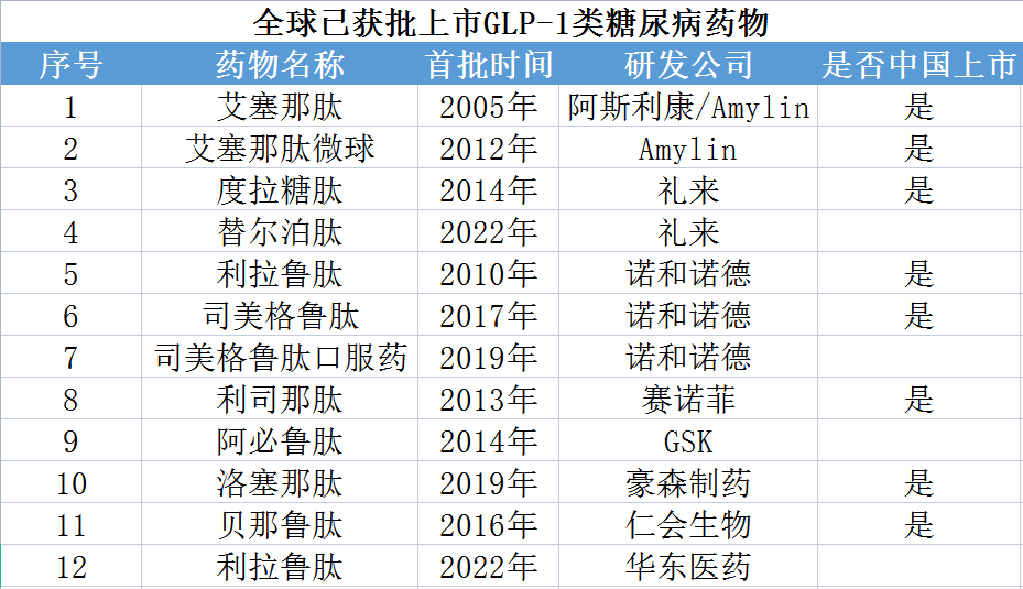 依托糖尿病及肥胖药物的庞大需求,GLP-1药物当前形势大好。其中不得不提的便是诺和诺德和礼来的GLP-1类药物。据诺和诺德2022年财报显示,诺和诺德司美格鲁肽(Semaglutide)的销售额达到109亿美元,成为首个年销售额突破百亿美元的GLP-1药物,超过礼来糖尿病药物王牌产品度拉糖肽的74.4亿美元。2023年一季度,诺和诺德的司美格鲁肽销售额达到42.23亿美元,预计全年销售额可能超过200亿美元。