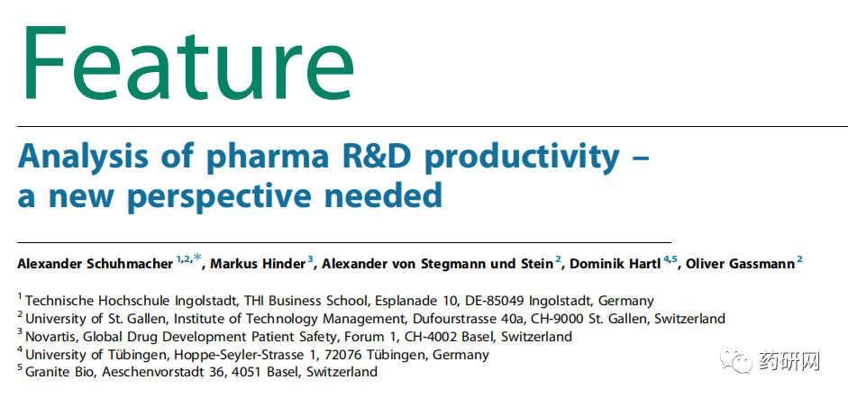 该文章由圣加仑大学的Alexander Schuhmacher、诺华Markus Hinder等人联合发表,其中圣加仑大学被称为“欧洲的哈佛”,是欧洲顶尖四大商学院之一。