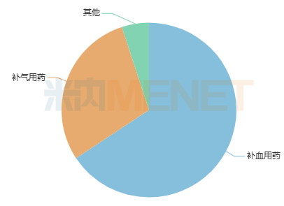从亚类来看,补血用药和补气用药各有8个,自汗用药和补气补血类其它用药各有2个。