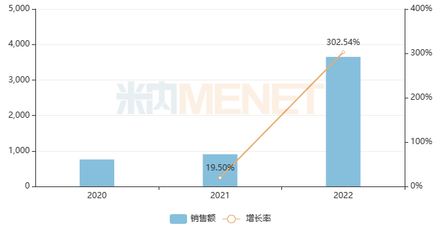近年中国网上药店补气补血类中成药市场规模快速扩容,2022年销售额同比增长超过70%。产品TOP20中,有3个的销售额超过1亿元,阿胶继续稳居“销冠”宝座,销售额首次突破4亿元大关。从增速来看,19个产品均为正增长,其中10个产品翻倍,参苓白术丸增速最快,超过300%。