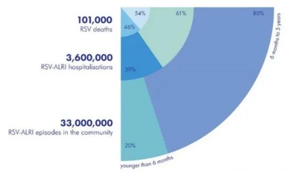 根据 WHO 估计,全球每年有约 3300 万-6000 万的儿童感染 RSV,以及大约 3%-7% 的 60 岁以上老年人会受到 RSV 感染。