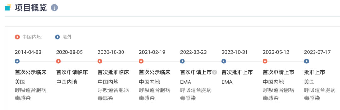 阿斯利康和赛诺菲共同开发的 Beyfortus(尼塞维单抗)属于长效性的单抗,专为所有婴儿设计,只需给予单剂量肌肉注射就能提供持续的预防 RSV 疾病作用(药效持续时间约为五个月),能将 RSV 引起的下呼吸道感染发生率降低 74.5%,此前已分别于 2022 年 10 月底、2023 年 7 月获得欧盟、美国 FDA 批准上市,是第一个也是唯一一个针对广泛新生儿和婴儿群体的 RSV 预防方案,极具里程碑意义。